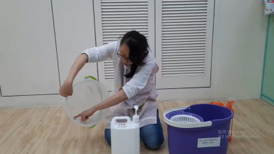 1090331清潔劑調製萌寶地板清洗中庭剪樹
